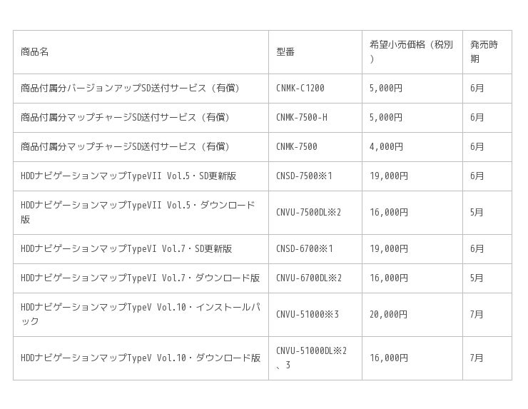既発売のカーナビゲーションの地図、機能をバージョンアップするソフトを発売します。