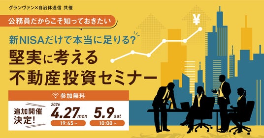 イシン株式会社(本社:東京都港区、代表取締役社長:西中 大史、証券コード:143A)が運営する公民共創の先進事例を紹介するメディア『自治体通信』は、にグランヴァン×自治体通信 共催セミナー「公務員だからこそ知っておきたい 新NISAだけで本当に足りる?堅実に考える不動産投資セミナー」を開催いたします。
