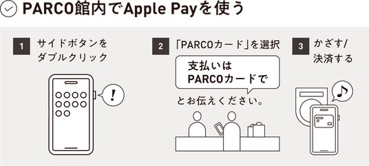 *1:静岡PARCO・福岡PARCOではApple Pay(を使ったVisaのタッチ決済)はご利用いただけません。