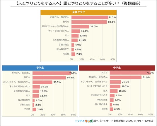 小学生では「お父さん・お母さん」、中学生では「友だち」が1位でした。