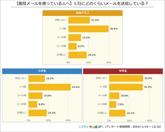 ニフティ株式会社(本社:東京都新宿区、代表取締役社長:前島 一就、以下、当社)は、当社が運営する子ども向けサイト「ニフティキッズ」にて、「メール」に関するアンケート調査を実施し、本日4月24日(木)にレポートを公開しました。