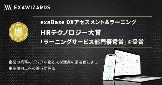 株式会社エクサウィザーズ(東京都港区、代表取締役社長:春田 真、以下エクサウィザーズ)は、DX人材の発掘・育成サービス「exaBase DXアセスメント&ラーニング」が、第10回 HRテクノロジー大賞において「ラーニングサービス部門優秀賞」を受賞したことをお知らせします。2019年8月の提供開始以降、累計2,000社以上30万人にご利用いただき、企業の業務のデジタル化と人材活用の最適化による生産性向上に寄与してきたことが評価されました。