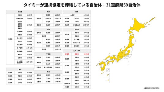 当社はこれまで38道府県・58自治体と連携協定を締結しており、今回の鳥栖市との連携は31道府県・59自治体目となります(※1)。なお、佐賀県内の自治体との連携は今回が初です。