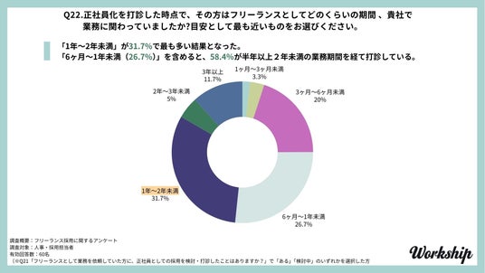 この結果は、企業側が半年程度の期間でそのフリーランスの実務能力、相性、貢献度を十分に評価し、正社員としての採用に踏み切っていることを示しています。
