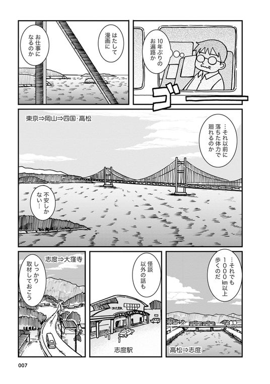既刊作品に、お遍路で出会った人々とのエピソードをまとめた「アルキヘンロズカン」上下巻(双葉社)のほか、「敗走記」(講談社)、「みちのくに みちつくる」前後編(双葉社)、愛犬との17年の暮らしをつづった「ゆう太のこと」(双葉社)。そして前作「怪談奇談まみれの四国お遍路」(竹書房)などがある。