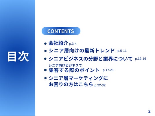 本レポートでは、シニア層の集客に課題を感じている方向けに効果的なマーケティング手法を取り上げています。また、シニア向け市場に影響を与える最新トレンド(2025年3月版)についても紹介しています。