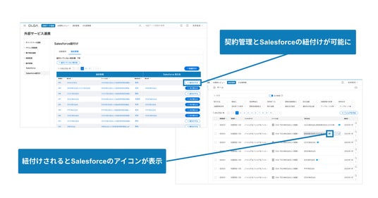「OLGA for Salesforce」は、事業部門ツールのSalesforceと法務部門ツールのOLGAを連携させることで、事業部門で持つ顧客情報と、法務部門で持つ契約書の締結に当たっての経緯ややり取りを含めた情報を一元化し、業務効率の大幅な向上を実現するアプリケーションです。