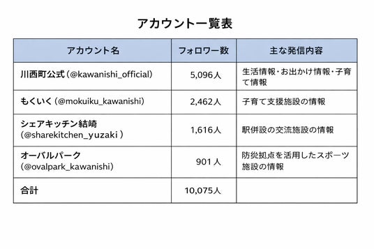 これら各アカウントでは、ターゲットや発信目的を踏まえた戦略的なコンテンツ設計により、子育て・交流・スポーツといった分野ごとの情報接点が強化され、川西町全体の情報発信力の向上につながっています。 対象記事:https://www.instagram.com/p/DGedyc3yGqo/?img_index=1