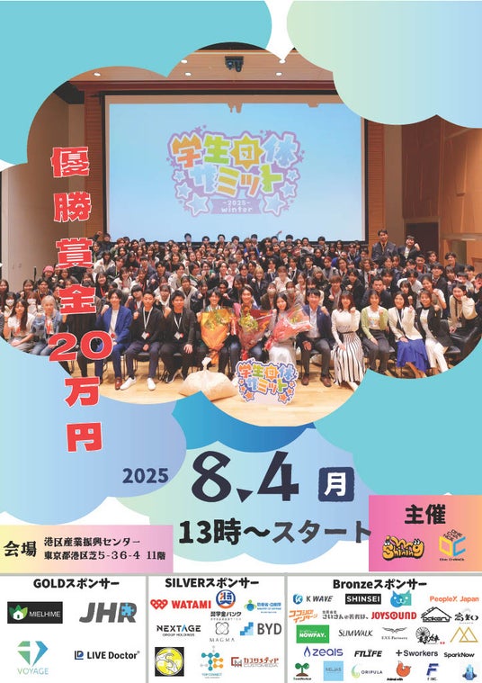株式会社カスタメディア(本店:大阪府大阪市、代表取締役:宮崎耕史、以下 当社)は、株式会社Shining(本社:東京都江東区 代表:大橋 星南)が2025年8月4日(月)に開催する国内最大級の学生団体ピッチイベント 「学生団体サミット 2025」 にシルバースポンサー として協賛します。同サミットへの協賛は、2025年2月17日に開催された「関西学生団体サミット 2025」に続き、2回目となります。