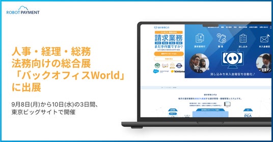 企業のお金の流れを円滑にし、新たな価値創造を促進する株式会社ROBOT PAYMENT(本社:東京都渋谷区、代表取締役執行役員CEO:清久 健也、証券コード:4374、以下「ROBOT PAYMENT」)は、2025年9月8日(月)から10日(水)に東京ビッグサイトで開催される「バックオフィス World 2025 夏 東京」に当社の主要な4サービスを出展します。