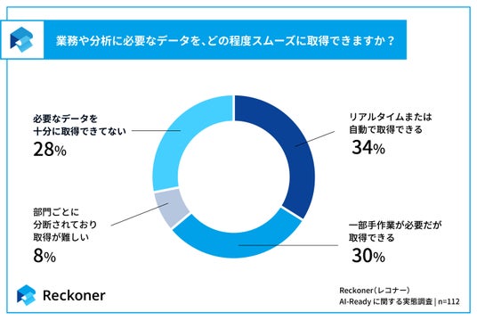 株式会社スリーシェイク(本社:東京都中央区、代表取締役社長:吉田 拓真、以下スリーシェイク)は、全国のビジネスパーソン112名を対象に、AI活用およびその前提となるデータ環境に関する実態調査を実施しました。本調査では、AIを継続的に業務や意思決定に活用できる状態をAI-Readyと定義し、その構成要素の一つであるデータの取得や品質といったデータ基盤に焦点を当て、現状の実態を調査しました。