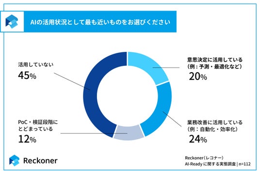 - AI活用は約4割、未活用も約4割で、進展にばらつき