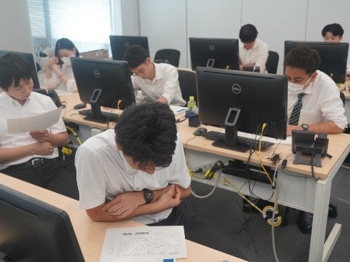 お客さま対応を行うコンタクトセンターの見学を実施しました。その後、現役オペレーターを講師とし、お客さま役・オペレーター役に分かれ、自動車保険の契約に関するお問い合わせの模擬応対を体験いただきました。