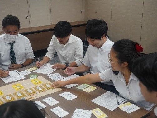 一般社団法人日本損害保険協会と公益財団法人生命保険文化センターが共同で制作したカードゲーム「ソナソナ」を用いて、リスクに備えることの大切さとその手段である保険について、楽しみながら学んでいただきました。授業に取り入れていただけるよう、日本損害保険協会が提供するほかの教材についても紹介しました。