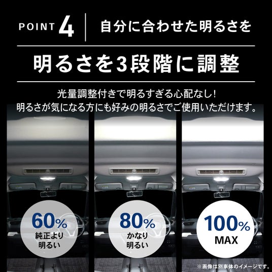 1.純正より格段に明るい!透明感のある色合いでムラなく車内を照らします。探し物もすぐに見つかります!