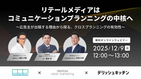 セッションでは、まず広告主の出稿動機からリテールメディアの「現在地」を紐解き、次にテレビやデジタル施策と連携した「クロスプランニングの有効性」を具体的な事例と共に深掘り。最後に、リテールメディアが「マーケティングの主流」となるための「課題と未来」について、第一人者たちが本音で語り尽くします。