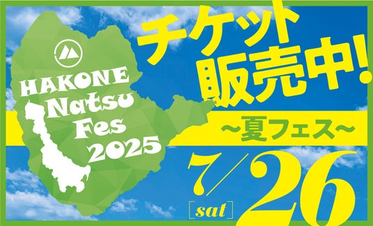FMヨコハマと箱根町は2025年7月26日(土)に「HAKONE Natsu Fes 2025 ~箱根夏フェス~」を箱根町総合体育館「星槎レイクアリーナ箱根」で開催します。FMヨコハマ一押しのアーティストによるライブ、はこね親善大使の松尾駿(チョコレートプラネット)による「箱根コラボステージ(はこね親善大使 松尾駿/ジェラードン/囲碁将棋/FINLANDS(塩入冬湖弾き語り)/佐久間 龍星)のチケットを販売中です。ぜひお越しください。
