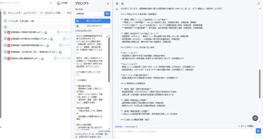 共有フォルダに保存された資料や過去案件データの解析にも対応し、開発・設計部門内での情報活用を促進する。