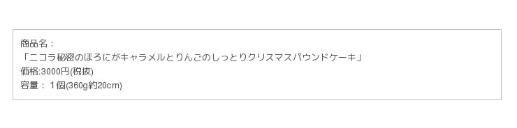 「ニコラ秘密のほろにがキャラメルとりんごのしっとりクリスマスパウンドケーキ」