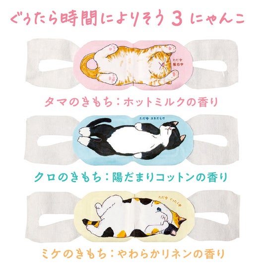 セット内容:ホットアイマスク9枚(タマ、クロ、ミケ 各3枚)