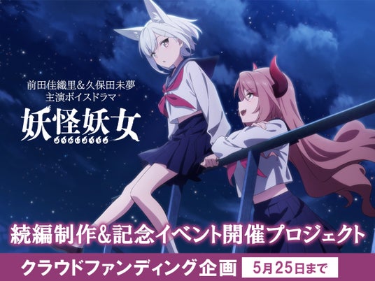 声優の前田佳織里さんと久保田未夢さんがダブル主演するボイスドラマ「妖怪妖女」の続編(第3話・第4話、ASMR版)の制作と、記念イベントの開催が決定しました。