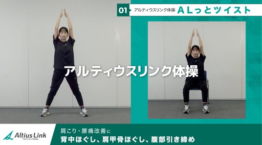 アルティウスリンク株式会社(所在地:東京都渋谷区、代表取締役社長:那谷 雅敏、以下 当社)は、健康経営のさらなる推進を目的に、BPO※業界特有の健康課題に対応したオリジナル体操「アルティウスリンク体操」を全社で導入しました。