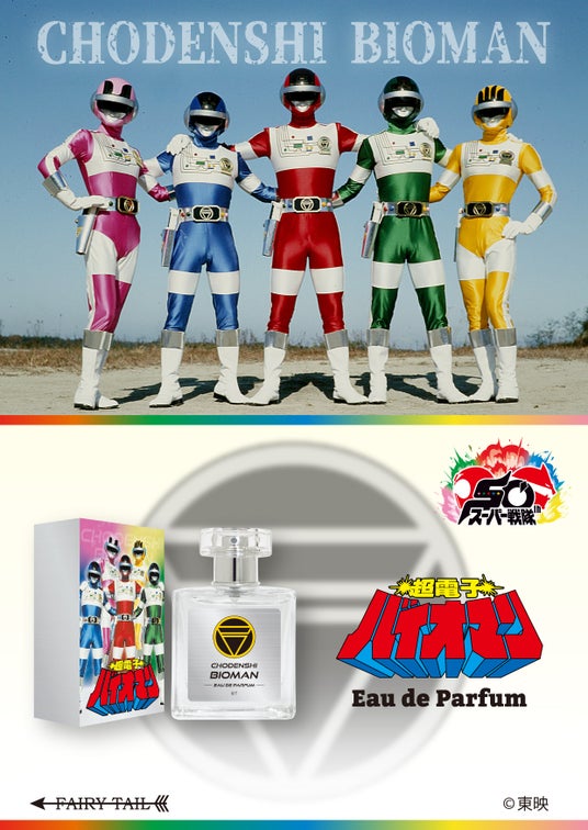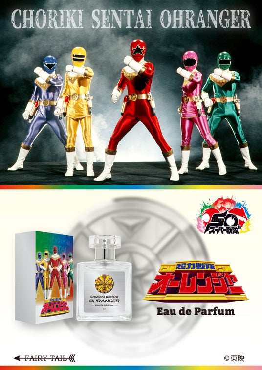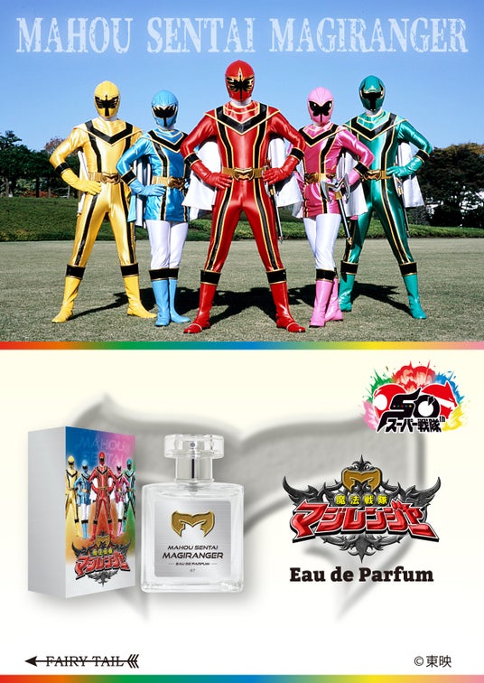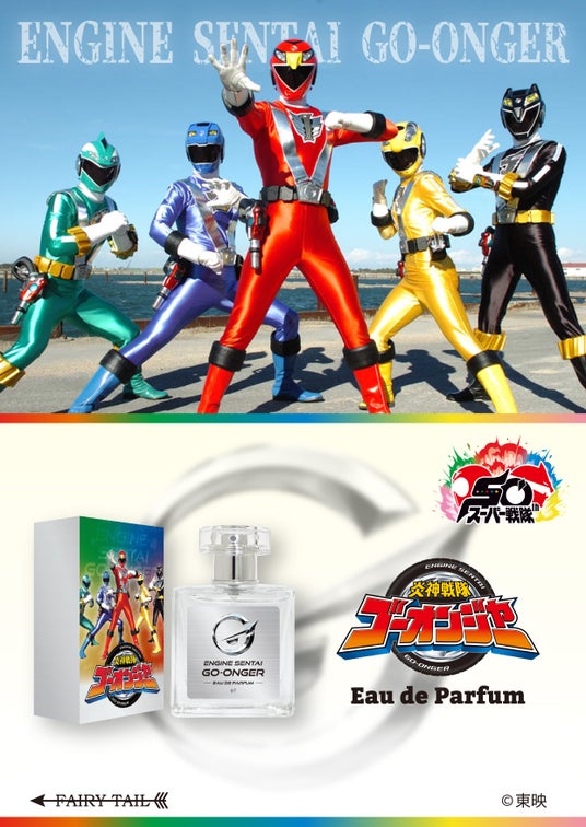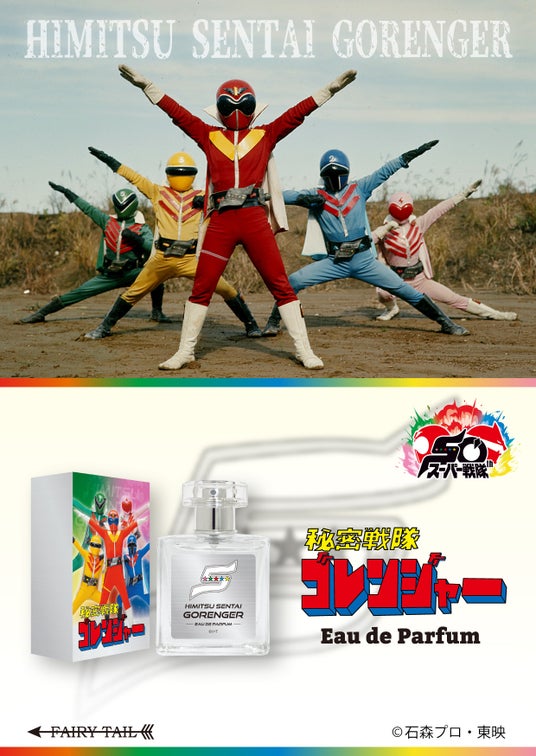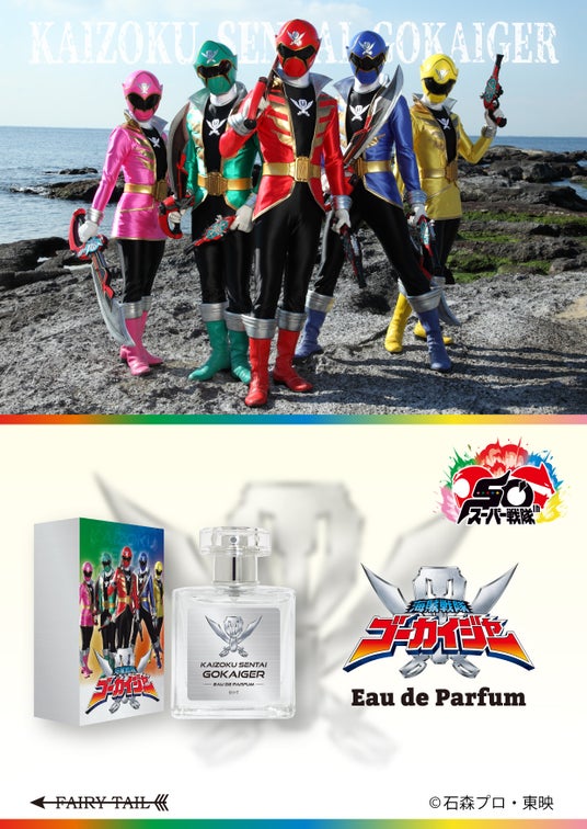 香水の輸入販売を手がけるフェアリーテイル株式会社(東京都港区)は、「スーパー戦隊シリーズ」50周年を記念して、『秘密戦隊ゴレンジャー』、『海賊戦隊ゴーカイジャー』等、スーパー戦隊シリーズの香水を発売します。