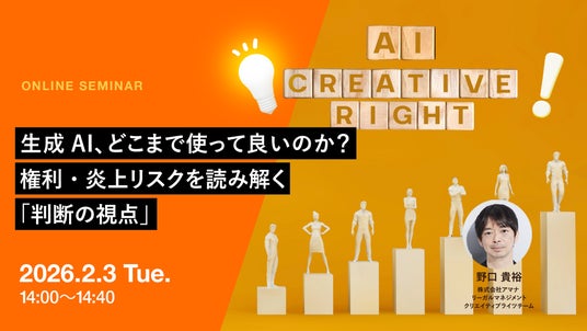 コミュニケーション変革をクリエイティブで実現する株式会社アマナ(本社:東京都品川区、代表取締役社長:金子剛章、以下「アマナ」)は、2026年2月3日(火)、『生成AI、どこまで使って良いのか? ~権利・炎上リスクを読み解く「判断の視点」~』をテーマにオンラインセミナーを開催します。