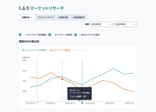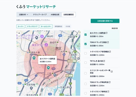 チラシ・買い物情報サービス「トクバイ」を運営する株式会社くふうカンパニー(以下、「くふうカンパニー」)は、小売店舗のデータに基づいたマーケティングを支援する分析ツール「くふうマーケットリサーチ」の本格提供を開始いたしました。本ツールは、「トクバイ」に蓄積されたユーザーの行動データやチラシ・商品価格情報などを基に商圏エリアの動向を多角的に分析し、効果的な販促戦略の立案を支援します。