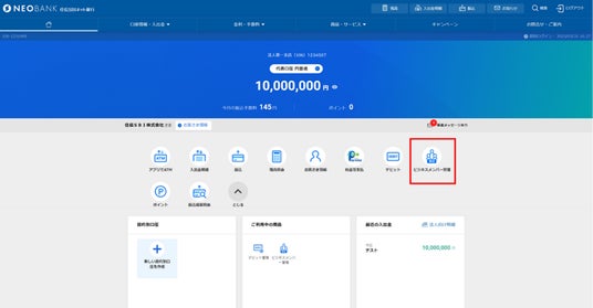 PCまたはスマートフォンから法人口座にログイン後、ホーム画面の「ビジネスメンバー管理」のアイコンよりご利用いただけます。