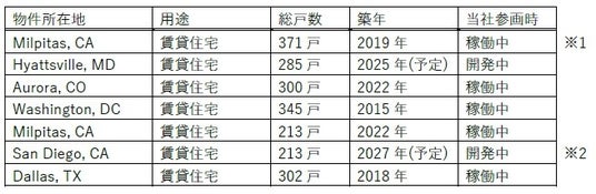 本共同事業では、TLUSのソーシング力に加え、90億ドル相当の不動産デット投資残高と運用体制を有するKennedy Wilsonのデット投資のソーシング力も活用し、リファイナンスや新規ローン調達時に顕在化する優良な優先出資等の投資機会の獲得を目指します。全米主要都市の賃貸住宅および物流施設の稼働物件または開発案件を投資対象とし、当初総額200百万ドル超の共同投資を予定しております。