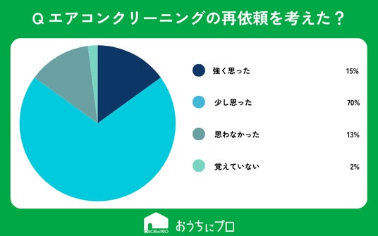 - 85%の人がエアコンクリーニングの再依頼を考えたことがあると回答した。