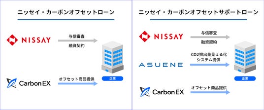 アスエネ株式会社(本社:東京都港区、代表取締役CEO:西和田 浩平、以下「アスエネ」)とCarbon EX株式会社(本社:東京都港区、代表取締役CEO:西和田 浩平・竹田 峻輔、以下「Carbon EX」)が、日本生命保険相互会社(本店:大阪府大阪市、代表取締役社長:清水 博、以下「日本生命」)の新商品「ニッセイ・カーボンオフセットローン」および「ニッセイ・カーボンオフセットサポートローン」(以下「本商品」)にサービスを提供開始しました。