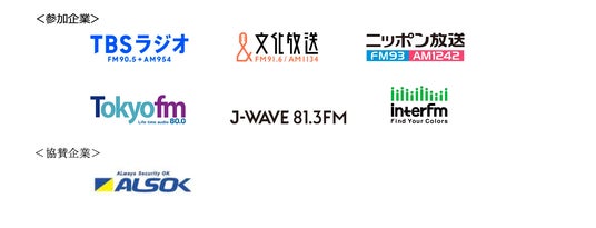 参加ラジオ局: 株式会社TBSラジオ、株式会社文化放送、株式会社ニッポン放送、株式会社エフエム東京、株式会社J-WAVE、株式会社InterFM897