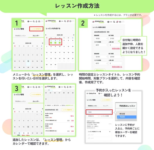クリエイティアでは2025年8月14日(木)より既存サービスの「レッスン機能」をアップデートし、「プラン加入継続特典機能」の追加を行いました。