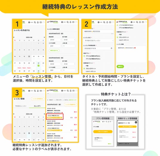 ●クリエイティアの「レッスン機能」に「プラン加入継続特典機能」を追加