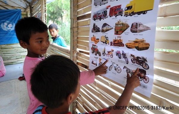 政府、ユニセフ、その他教育分野で活動する諸団体で組織する教育クラスターでは、