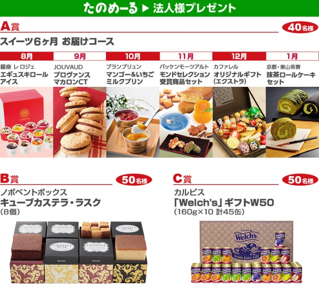 ■賞品 :法人のお客様 A賞:スイーツ6ヶ月お届けコース(40名様)