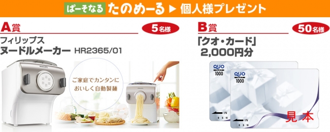 個人のお客様 A賞:フィリップス ヌードルメーカー HR2365/01(5名様)