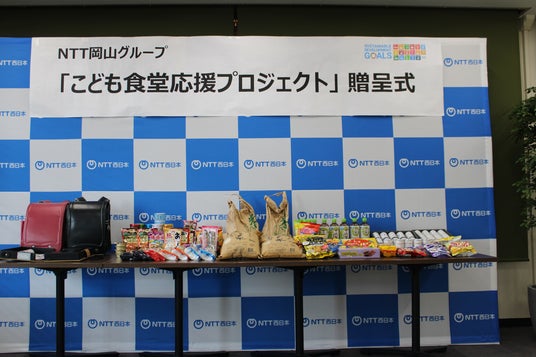 NTT西日本株式会社岡山支店(支店長 井上喜徳、以下 NTT西日本岡山支店)は、岡山エリアのNTTグループ※1の地域・社会貢献活動の推進及びSDGsへの取り組みとして、フードドライブ活動※2を実施しており、この活動を通じて集まった食料品や生活用品等を、これからの時代を担う未来ある、こどもたちの成長の一助とするため、こども食堂や地域食堂のネットワーク化を進める「一般社団法人 岡山こども食堂支援センター(代表理事 直島克樹)」様へ寄贈いたしました。