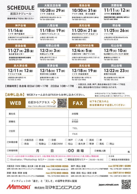 この度、弊社シンクイノベーション株式会社は、株式会社ミマキエンジニアリング関西四国各エリアで開催される