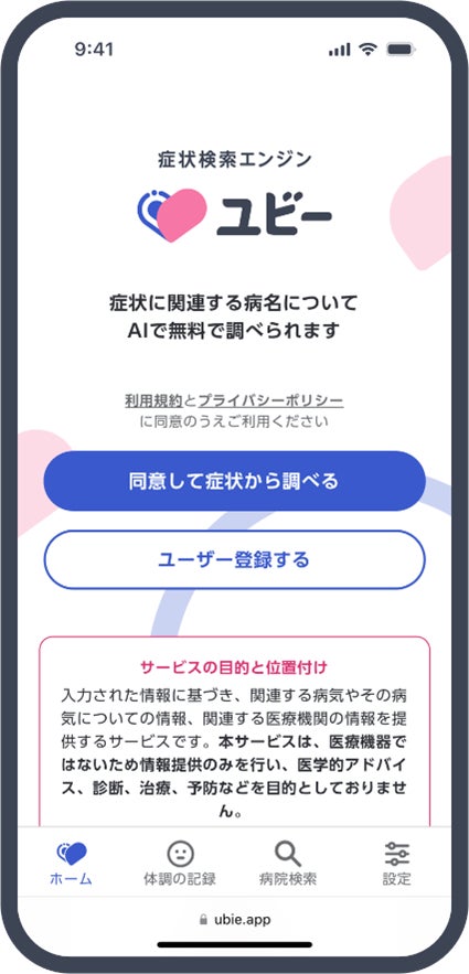 ユビーは、生活者の適切な医療へのかかり方をサポートする受診支援サービスで、アプリもしくはWebでご利用いただけます。詳細は別紙をご確認ください。