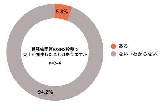 同僚のSNS投稿で炎上が起きた経験について尋ねたところ、「ある」との回答が5.8%でした※。