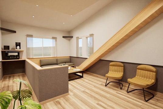 「DOG RESORT 湖都-大津-」は、1階に寝室、2階にリビング・キッチン・ロフトを配置したユニークな間取りが特徴の一棟貸切型ヴィラです。2階のロフトからは、リビングへ滑り台で一気に駆け下りたり、アスレチックネットで遊んだりと、まるで秘密基地のようなワクワクする空間が広がります。