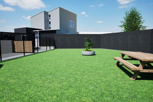 足腰への負担が少ないため、小型犬から大型犬までストレスフリーに遊べるほか、雑草の誤飲や足の汚れといった天然芝ならではの心配も不要。複数頭でも十分な広さを確保しており、愛犬が思う存分アクティブに過ごせる贅沢な屋外空間となっています。