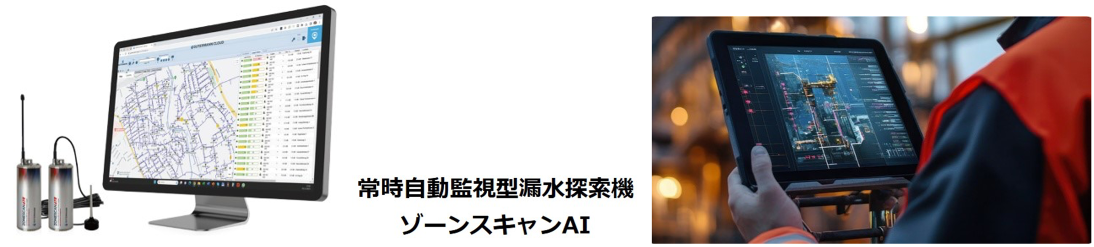 例えば、前述のハイドロトレーサーと組み合わせて使用するガス式漏水探知機「ハンター」により、従来難しかった夜間や騒音環境下での漏水箇所特定が飛躍的に効率化しました。また、無線ロガー式漏水探索システム「ゾーンスキャン」は AI を活用して広域の漏水を自動監視できる世界唯一の画期的製品であり、水道事業体による漏水常時監視体制の構築を可能にしています。