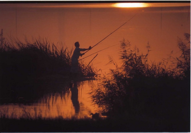 暮れなずむ沼辺を漕ぎゆく笹舟。水面を茜色に染め、幾重にも織りなす光彩の美しさ。その日の天候によって変化する夕焼け模様など、春夏秋冬、異なる美しい輝きを見せてくれます。その光景は、私の心をとらえて離さず、18年あまり、期待し、想像しながら撮影地に向かう至福の時でした。