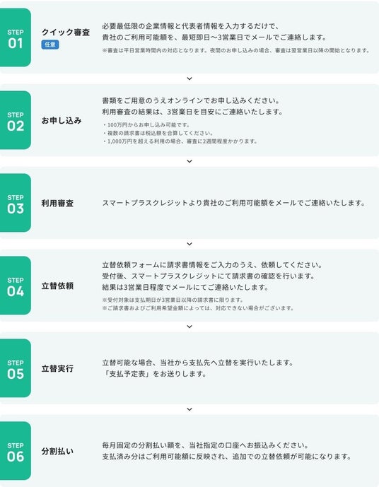 スマートプラスクレジットは、今後も「BizGrowth」の提供を通じてファイナンスサービスのプロセスを効率化・最適化し、成長期にある事業者が無理のないペースで事業に投資していくことを支援します。