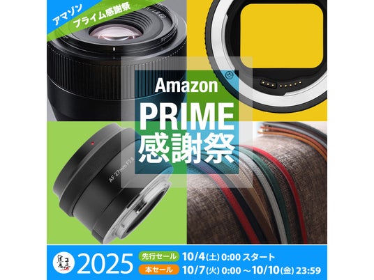 10月4日(土)0時~10月10日(金)23:59に開催される「Amazon プライム感謝祭」に参加いたします。焦点工房人気のマウントアダプターやレンズ、カメラアクセサリーなど、お得な商品を多数ご用意しています。ぜひこの機会にご利用ください。