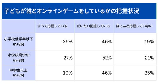 誰とオンラインゲームをしているか把握できていない親が4人に1人、把握状況は年齢別で差も